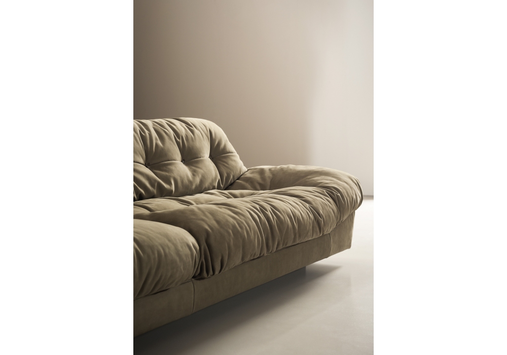 Milano conçu par Paola Navone pour Baxter est un canapé avec structure en contreplaqué phénolique et essence de sapin, base en bois de tulipier peint en noir. Rembourrage disponible en cuirs souples et décor avec cuir assorti.