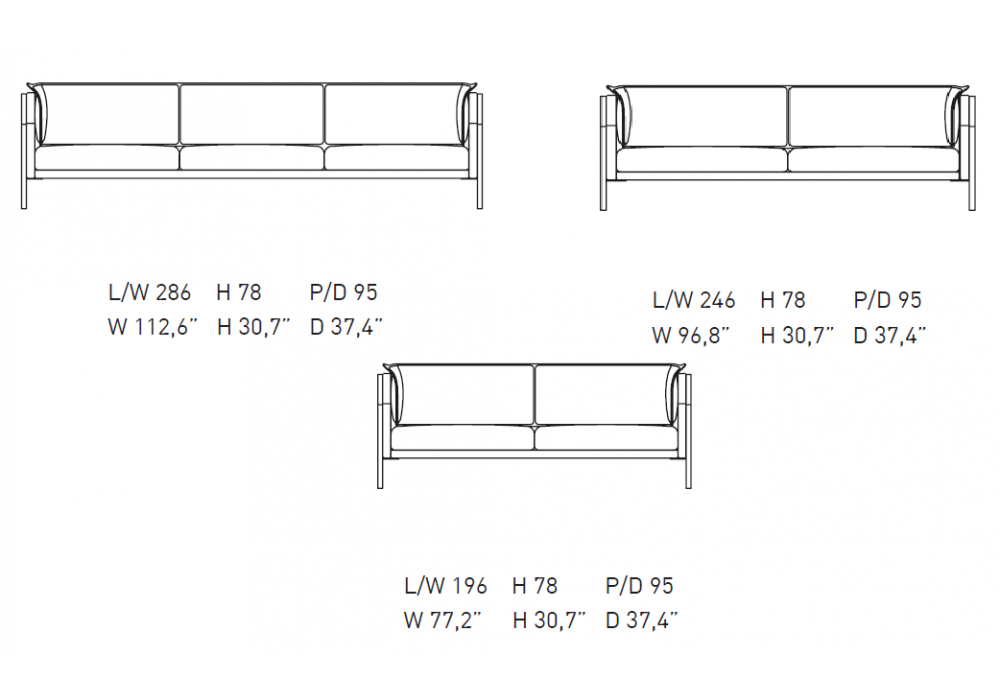 | Dimensions | 196 x 95 x H 78 cm; 246 x 95 x H 78 cm; 286 x 95 x H 78 cm. |