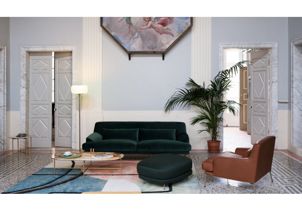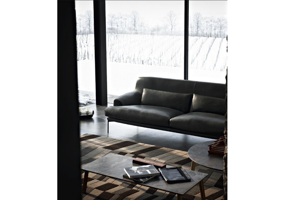 Montevideo conçu par Claesson Koivisto Rune pour Tacchini est un canapé avec revêtement déhoussable et coussins en plume, piètement en métal peint. Disponible en différentes finitions et dimensions.