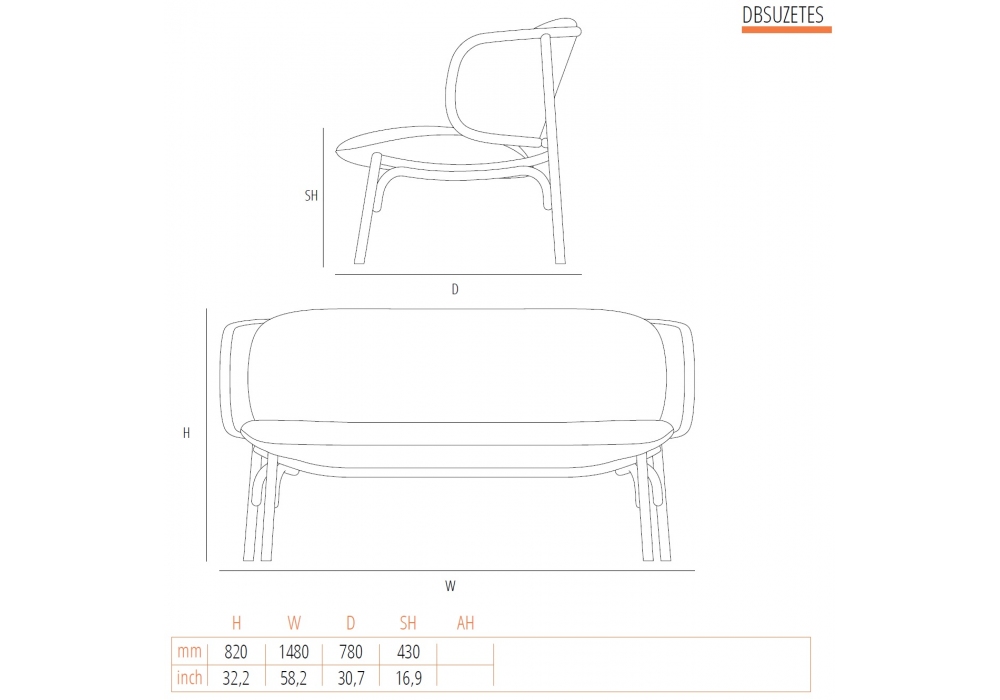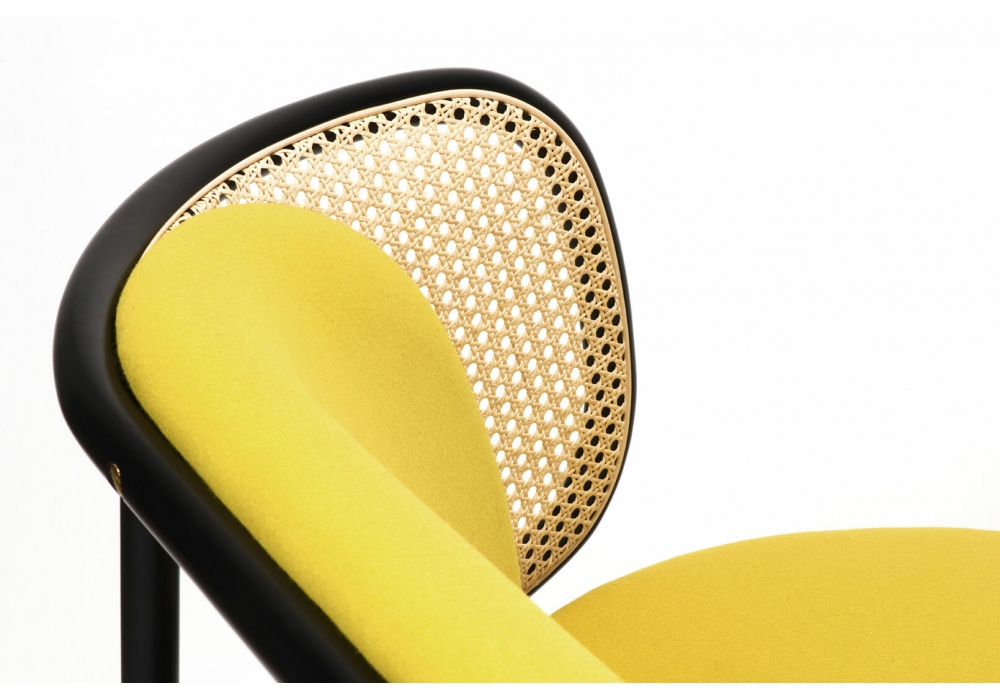 Suzenne conçue par Chiara Andreatti pour Gebrüder Thonet Vienna est une canapé deux places avec structure en hêtre cintré, grand coussin pour l’assise,dossier rembourré avec insert de paille de Vienne.