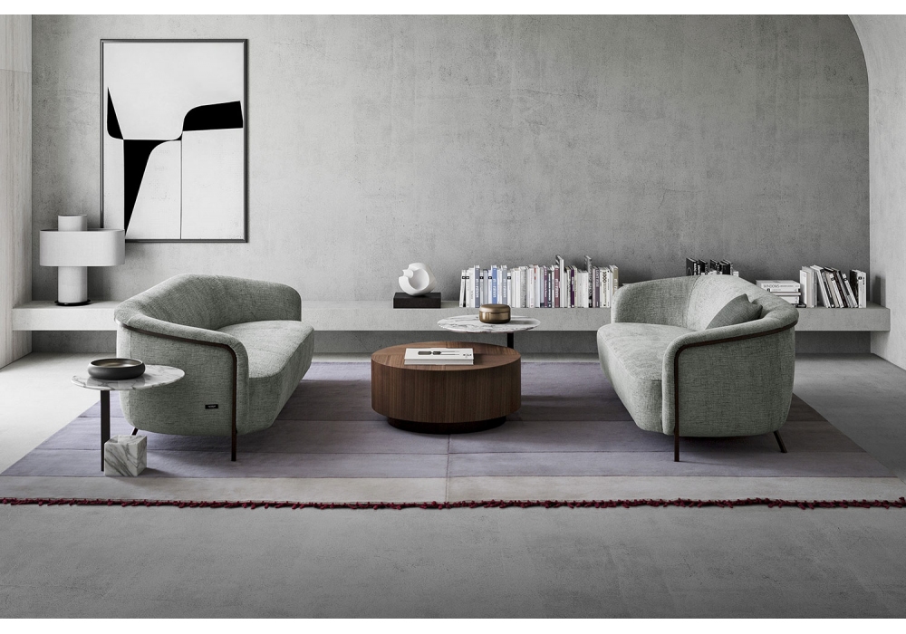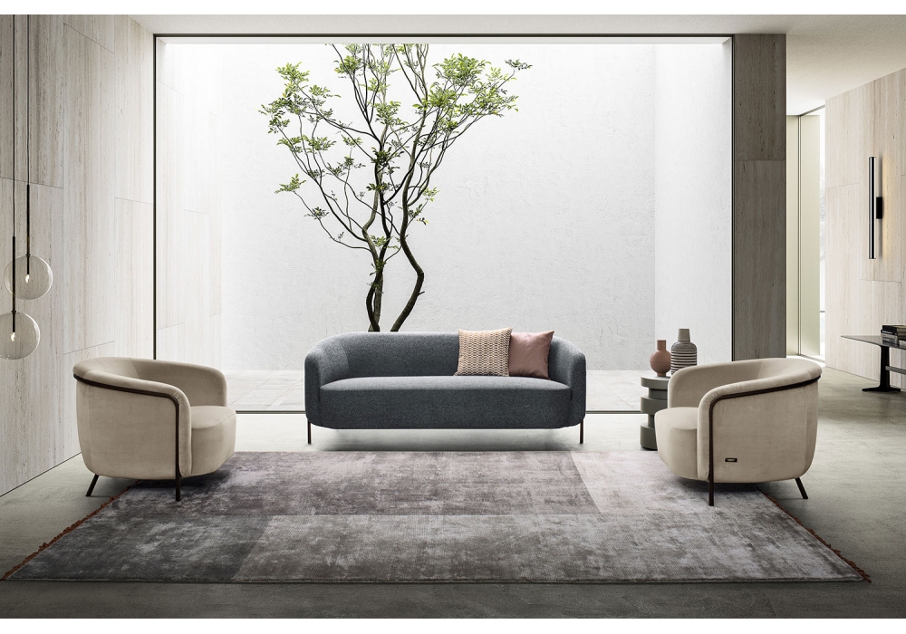 Ring conçu par Michele Mantovani pour Bodema est un canapé réalisé avec un revêtement en tissu, velours ou cuir et des cadres en métal de couleur bronze ou anthracite. Disponible en différentes finitions et dimensions.