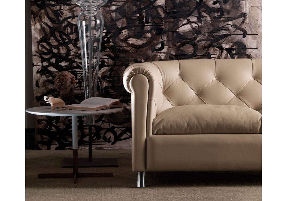 Le revêtement est en cuir Pelle Frau®. Un détail enfin: les pieds de chaque élément sont eux aussi disponibles en hêtre revêtu de cuir Pelle Frau® de la même couleur que la composition commandée ou en aluminium poli ou finition « canon de fusil ».