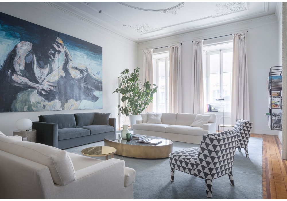 Belmon conçu par Andrea Parisio pour Meridiani est un canapé avec structure en bois et rembourrage en polyuréthane indéformable. Revêtement disponible en tissu ou cuir. Pieds en bois.
