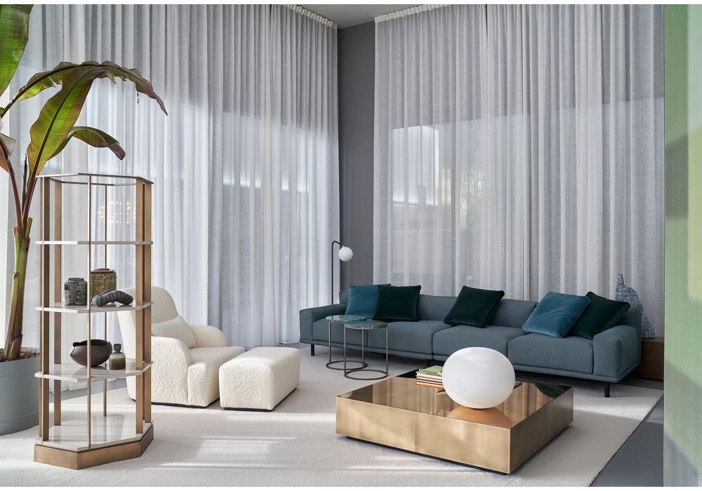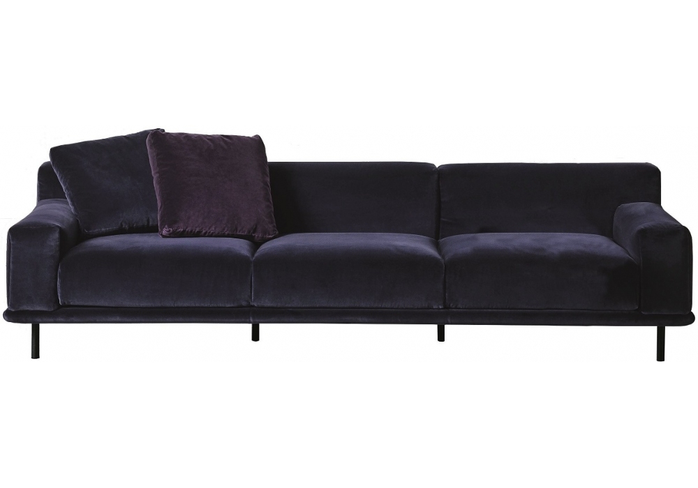 Timothy conçu par Andrea Parisio pour Meridiani est un canapé avec structure en métal lacqué avec sangles élastiques et rembourrage en polyuréthane à densités différenciés. Revêtement disponible en tissu ou cuir. Pieds en métal verni couleur noir.