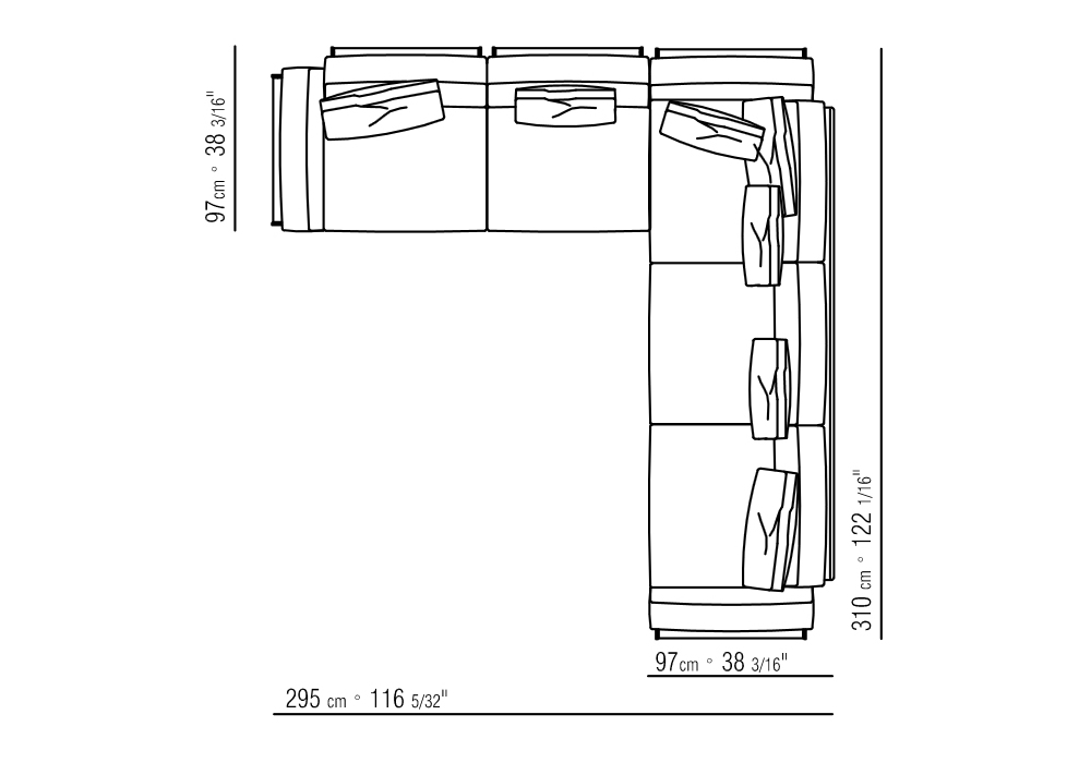 | Dimensions | • 310 x 97 x H 67 cm; • 295 x 225 x H 67 cm; • 380 x 283 x H 67 cm; • 295 x 310 x H 67 cm; • 295 x 198 x H 67 cm |