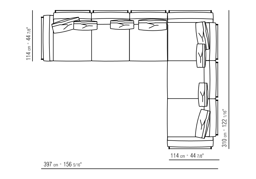 | Dimensions | • 310 x 114 x H 67 cm; • 312 x 225 x H 67 cm; • 397 x 300 x H 67 cm; • 380 x 283 x H 67 cm; • 397 x 310 x H 67 cm; • 310 x 114 x H 67 cm |