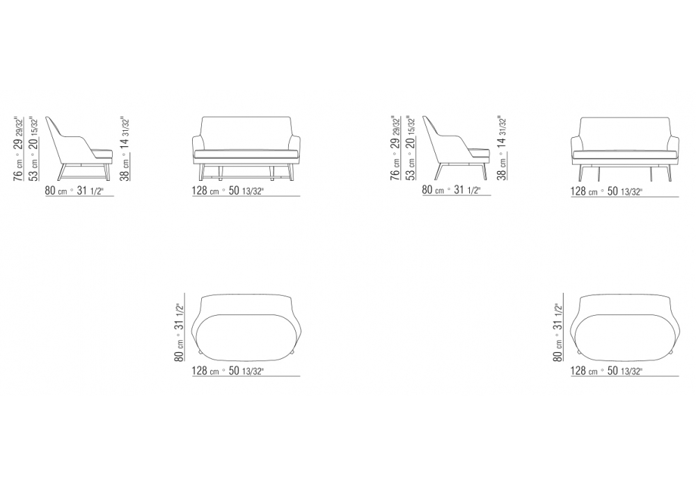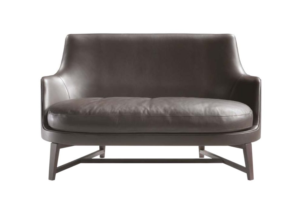 Guscio conçue par Antonio Citterio pour Flexform est une causeuse réalisée avec une structure en polyuréthane recouverte de tissu ou de cuir et de pieds en métal.