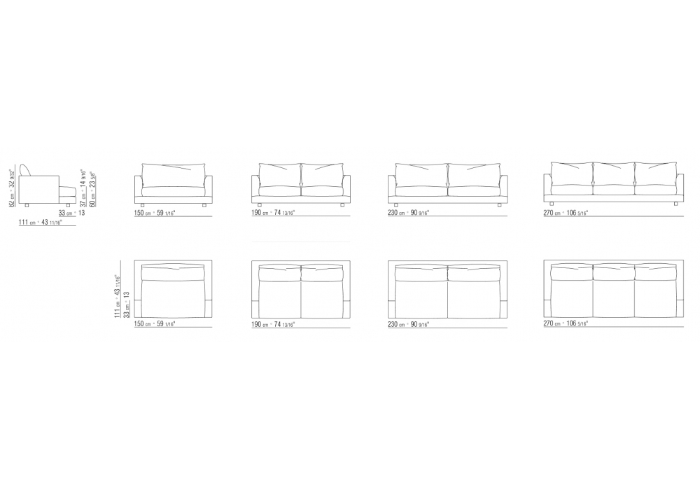 | Dimensions | • 150 x 111 x H 82 cm; • 190 x 111 x H 82 cm; • 230 x 111 x H 82 cm; • 270 x 111 x H 82 cm |