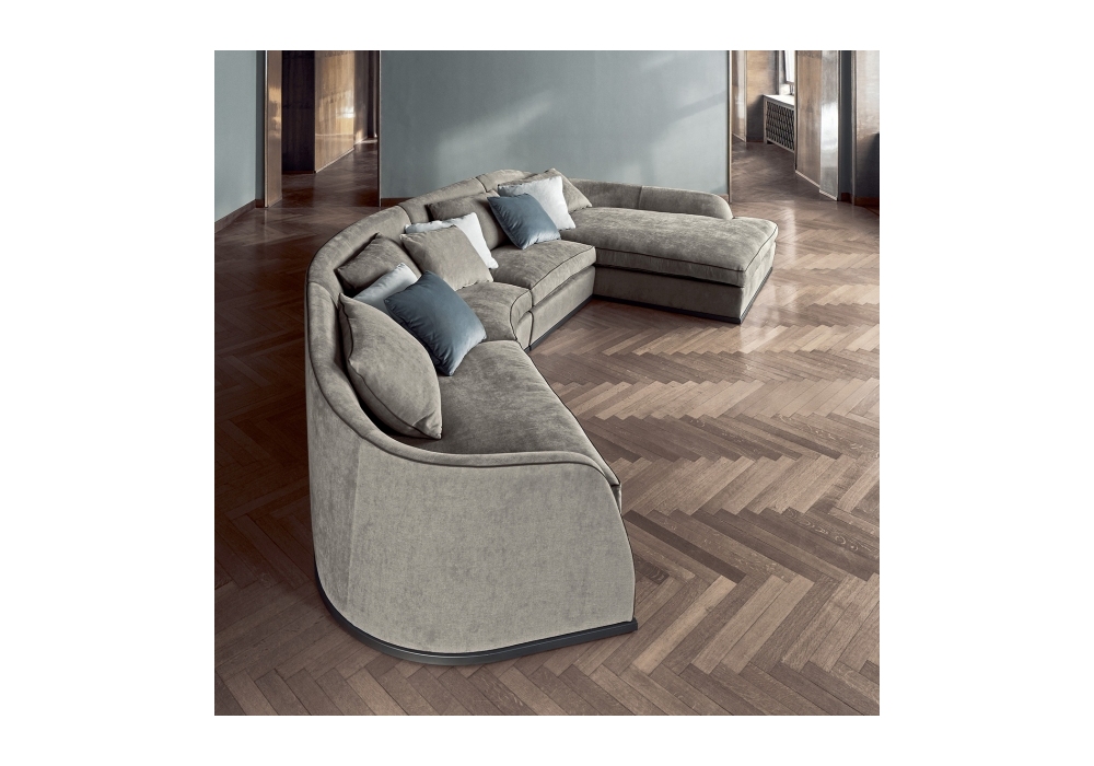 Alfred conçu par Roberto Lazzeroni pour Flexform est un canapé modulable composé d'une structure en bois massif rembourrée de polyuréthane, d'une base en métal et de coussins rembourrés de duvet d'oie. Le canapé est recouvert de cuir ou de tissu.