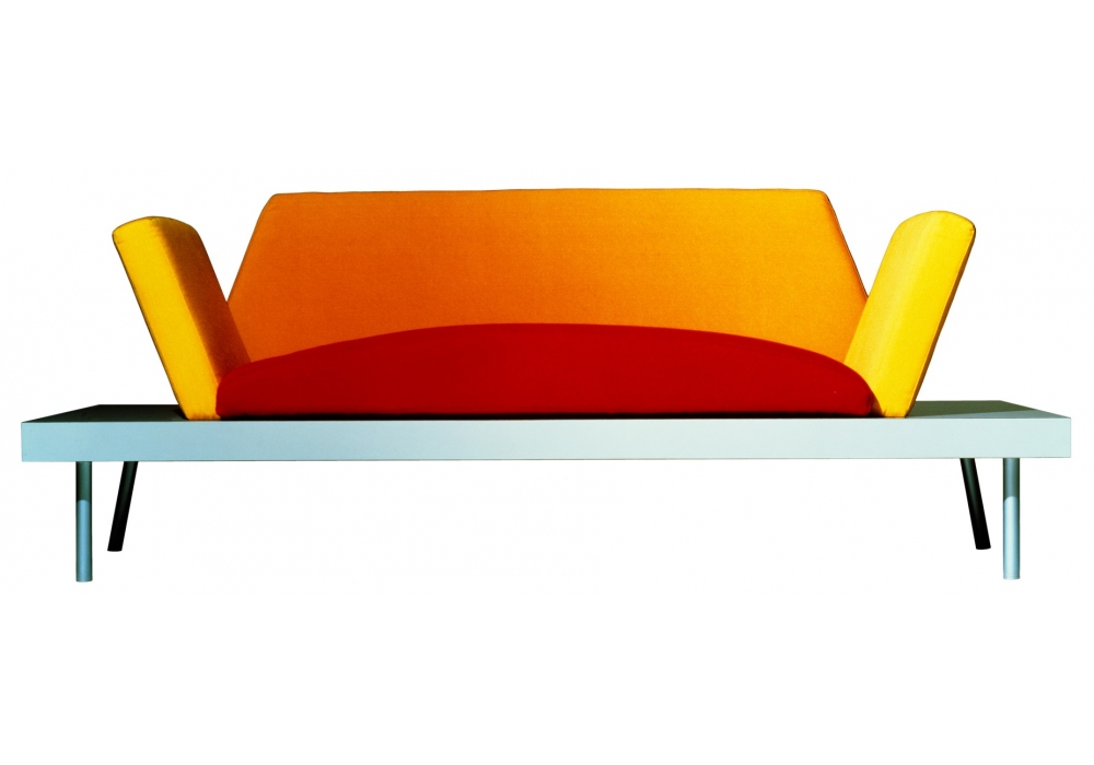 Dublin conçu par Marco Zanini pour Memphis Milano est un canapé en stratifié plastique, métal et revêtement en tissu synthétique ignifuge.