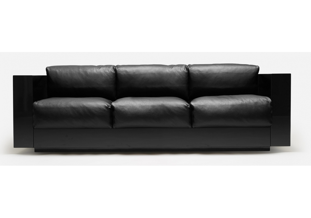 Saratoga conçu par Lella & Massimo Vignelli pour Poltronova est un canapé réalisé avec structure en bois laqué en polyester brillant et coussins rembourrés en cuir. Disponible en différentes finitions et dimensions.