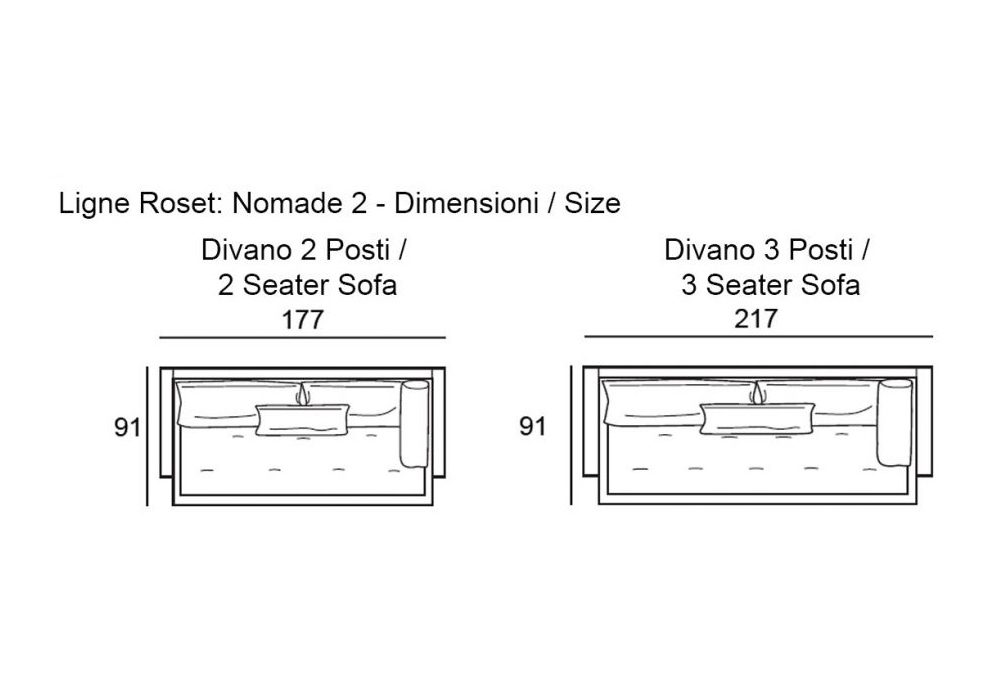 Nomade 2 conçu par Didier Gomez pour Ligne Roset est un canapé avec structure en tubulair d'acier à section carrée laqué époxy et panneaux en panneaux de particules revêtus de mousse polyéther. Coussins d'assise disponibles en 2 densités de mousse polyuréthane haute résilience Bultex. Revêtement en tissu ou en cuir. Il est possible de créer des compositions multicolores et/ou multi-matériaux. Aussi disponible en 2 dimensions: 2 ou 3 places.