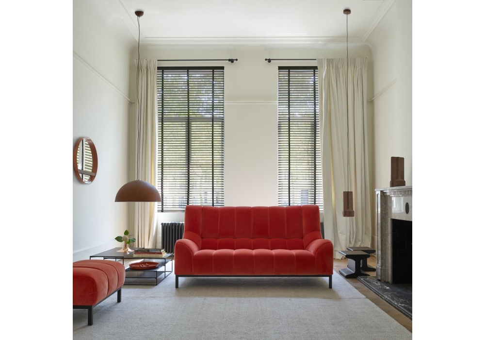 Phileas conçu par Philippe Nigro pour Ligne Roset est un canapé avec structure en acier mécano-soudé et panneaux de panneaux de particules, revêtus de ouate de polyester. Piétement en acier laqué époxy noir satiné ou bronze satiné, ou en noyer massif. Rembourrage en mousse polyuréthane Bultex haute résilience. Revêtement en tissu ou cuir. Aussi disponible en 2 dimensions: 2 ou 3 places.