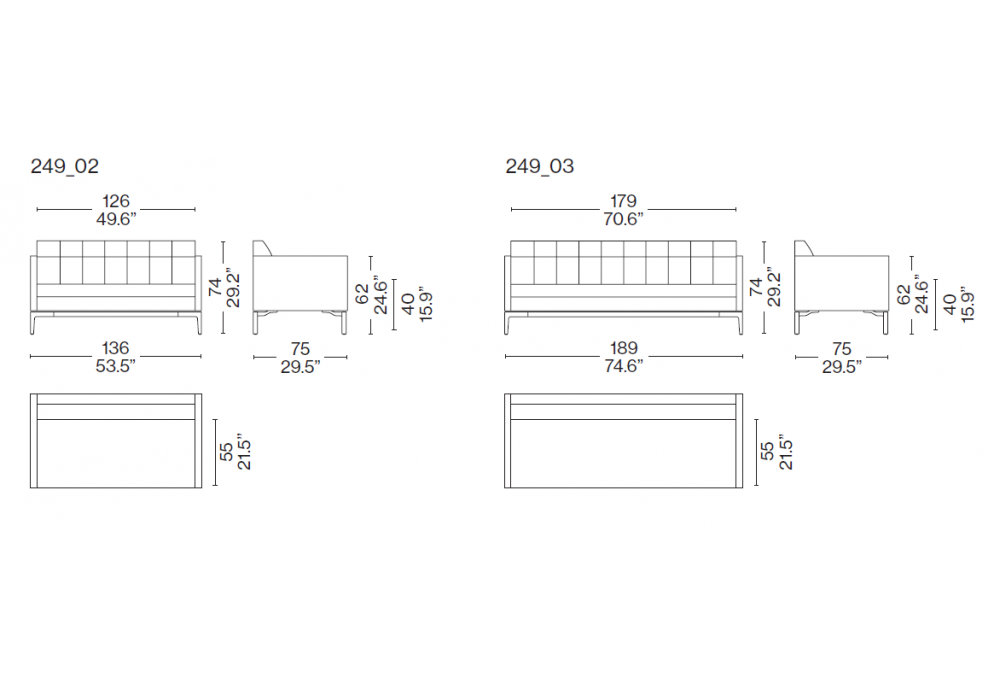 249 Volage EX-S Slim conçu par Philippe Starck pour Cassina est un canapé réalisé avec une base en aluminium en différentes finitions et revêtement en tissu ou cuir. Disponible en 2 dimensions.