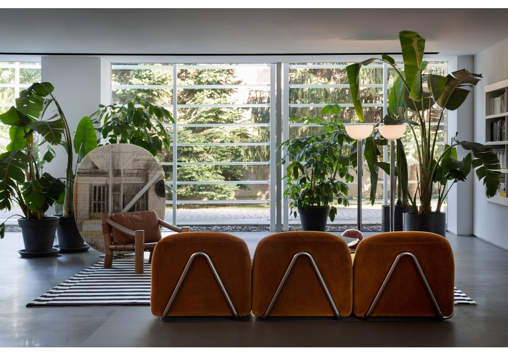 Victoria conçu par David / Nicolas pour Tacchini est un système modulaire avec structure de support en tube, disponible en version chrome poli, chrome noir mat et peint en noir. La tapisserie d'ameublement est disponible dans différents tissus et couleurs.