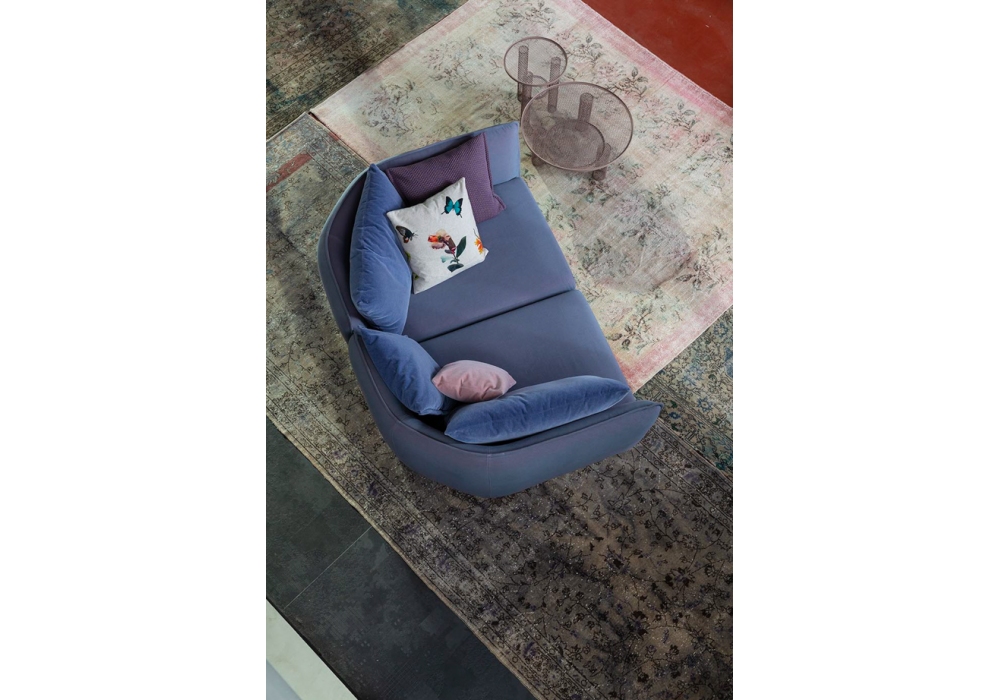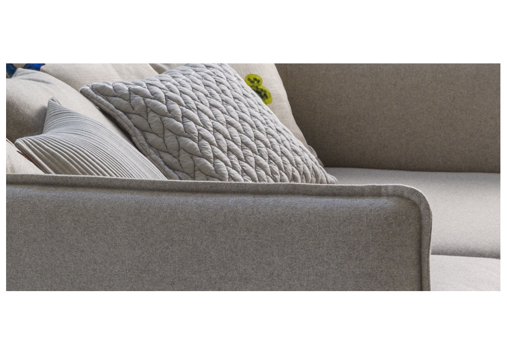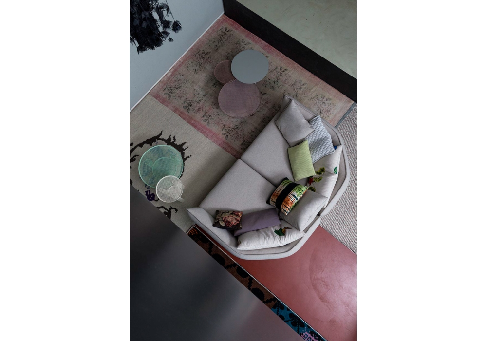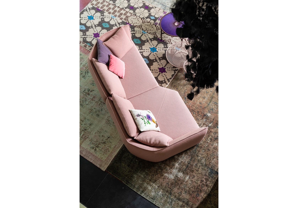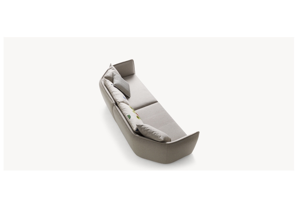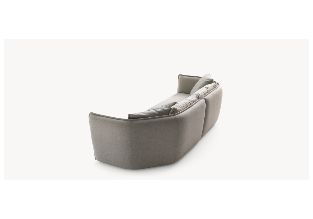 Chanfer conçu par Patricia Urquiola pour Moroso est un canapé modulable composé d'éléments d'assise en mousse de polyuréthane résistante aux contraintes de densités variées et en fibre de polyester sur structure en bois. Les parties terminales des côtés sont en mousse de polyuréthane ignifuge injectée. Les couvercles de collecte des chanfreins sont amovibles.