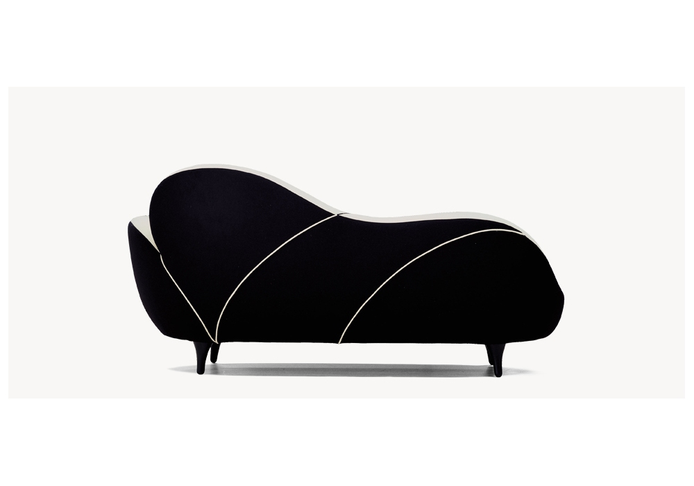 Saula Marina conçu par Javier Mariscal pour Moroso est un canapé en mousse de polyuréthane de densités variées et rembourrage en fibre de polyester sur structure en bois. Les pieds sont en hêtre laqué cipria ou laqué noir vissés au cadre.