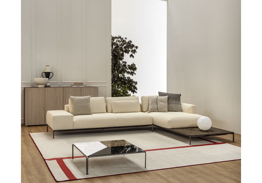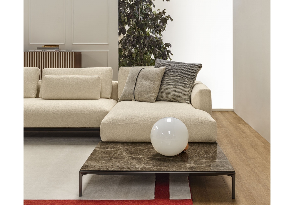 Dizzy conçu par Ludovica & Roberto Palomba pour Casamania & Horm est un canapé réalisé avec structure et pieds en aluminium, coussins en mousse de polyuréthane multi-densité à haute résilience. Les coussins reposent sur des sangles élastiques à haute teneur en caoutchouc insérées dans le cadre en aluminium. Revêtement en tissu ou en cuir. Disponible en différentes compositions.