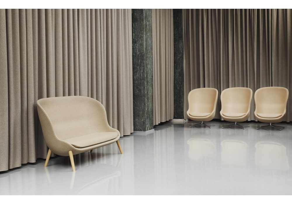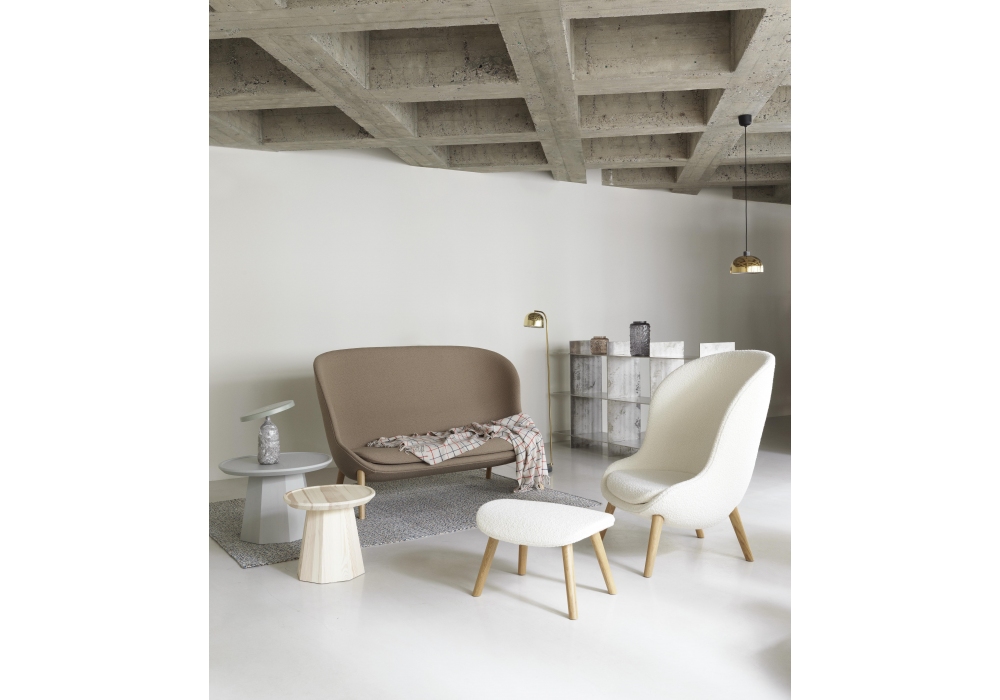 Hyg, conçu par Simon Legald pour Normann Copenhagen est un canapé, avec structure portante en bois et coque rembourrée en mousse de polyuréthane, recouverte de cuir ou de tissu. Hyg est disponible avec des pieds en chêne noir ou naturel et différentes finitions de cuir et de tissu.