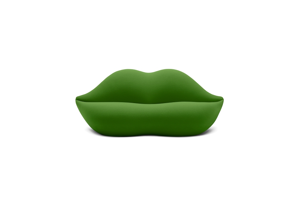 Bocca Unlimited conçu par Studio 65 pour Gufram est un canapé rembourré en mousse de polyuréthane, recouvert de laine bouclée. Sa forme s'inspire du "Portrait de Mae West" réalisé par l'artiste surréaliste Salvador Dalì, ce qui en fait un objet de design iconique pour la maison. Cette version a été créée pour célébrer le 50e anniversaire du premier modèle Bocca original, élargissant la palette de couleurs jusqu'à 25 couleurs.
