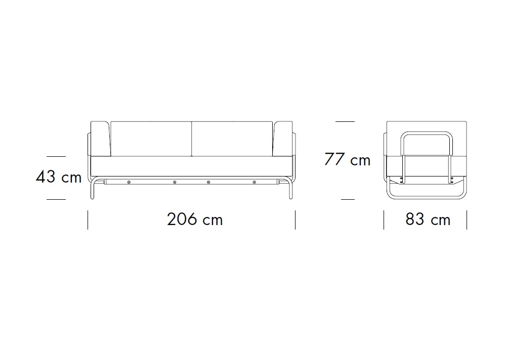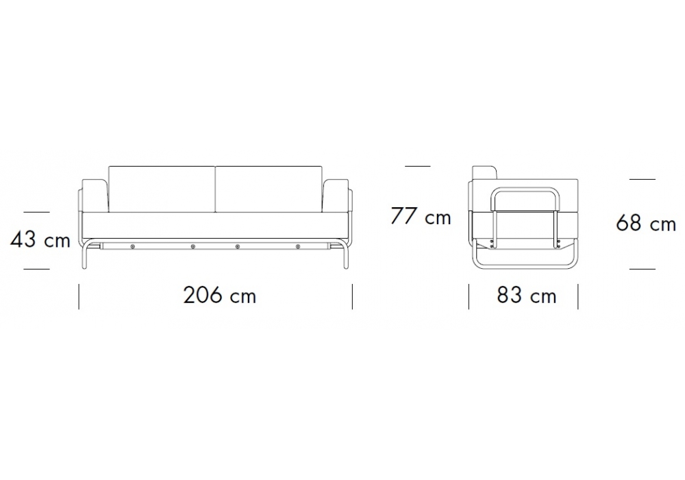 | Dimensions | • 206 x 83 x H 77 cm; • 286 x 83 x H 77 cm |