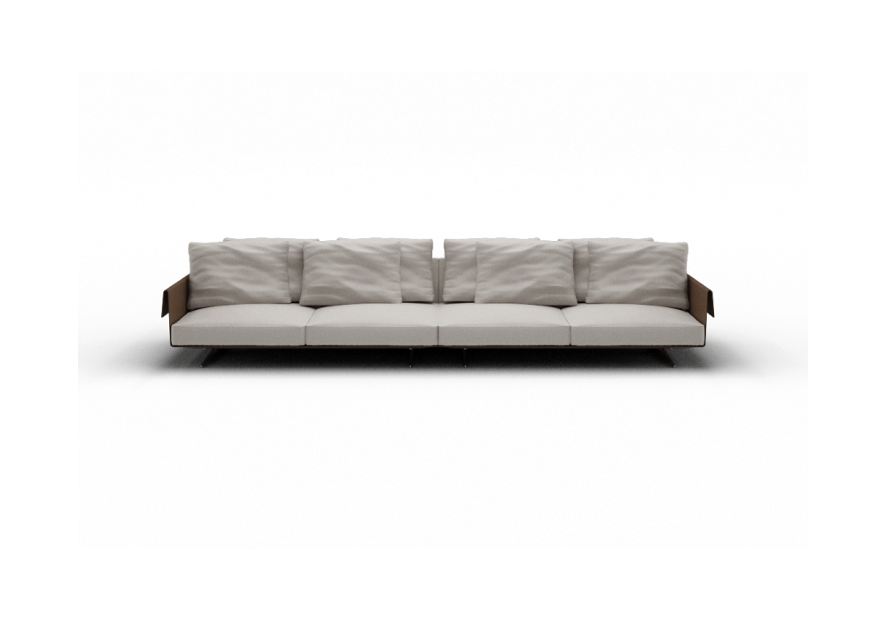 Bretton conçu par Antonio Citterio pour Flexform est un canapé avec structure en métal recouvert de cuir, coussins rembourrés en duvet d'oie recouverts de cuir ou de tissu et pieds en aluminium.
