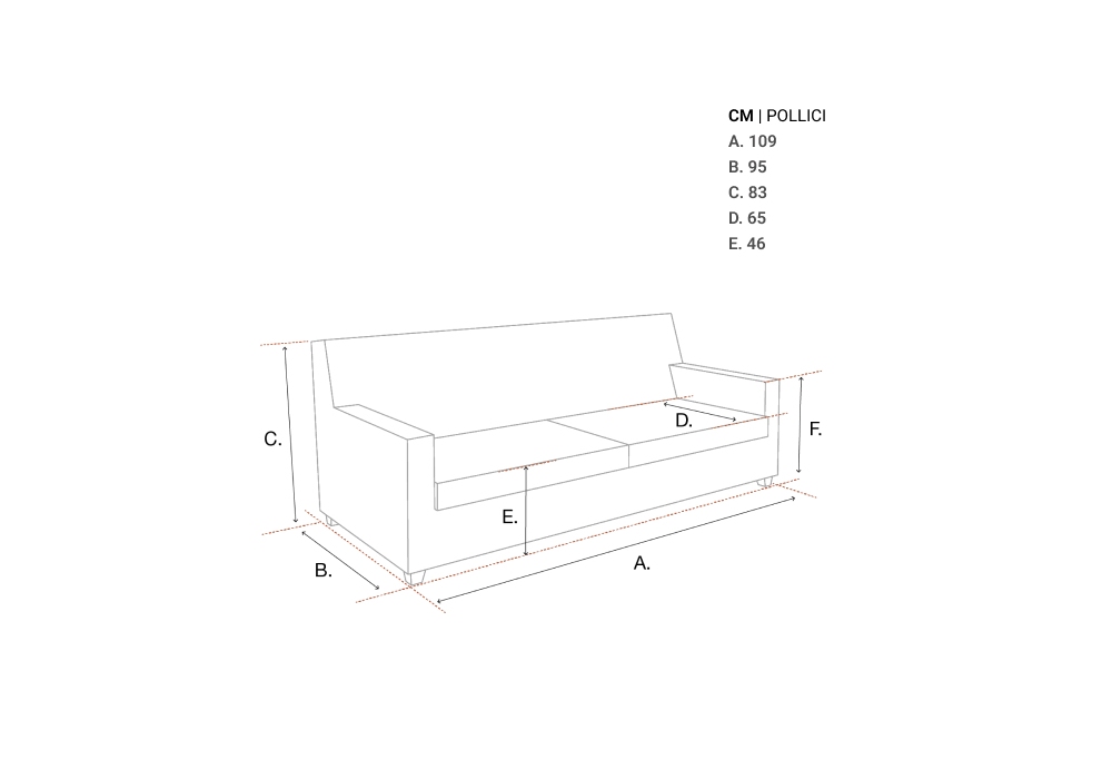 | Dimensions | A. 109 | B. 95 | C. 83 | D. 65 | E. 46 cm |