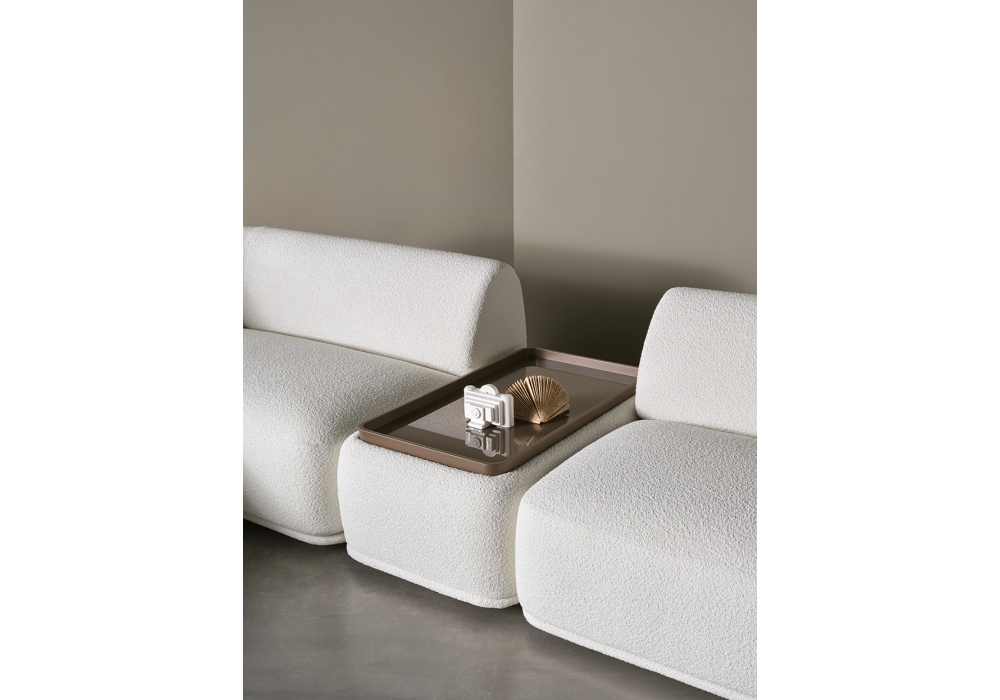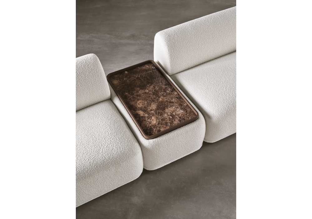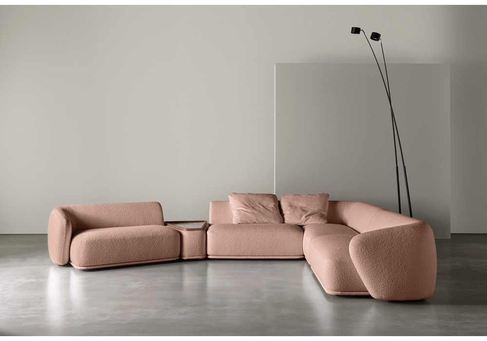 René conçu par Andrea Parisio pour Meridiani est un canapé aux assises et dossiers arrondis, disponible en configuration modulaire ou en version fixe, droite et courbée. Il est composé de divers éléments, semi-circulaires, trapézoïdaux, ronds ou rectangulaires et peut également supporter des plateaux disponibles en différentes finitions.