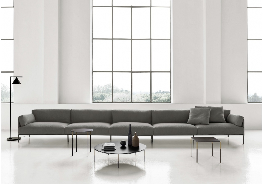 Greene System conçu par David Lopez Quincoces pour Living Divani est un canapé modulable avec pieds en acier verni gris foncé ou bruni. Revêtement disponible en cuir ou tissu. Disponible en différents modèles.