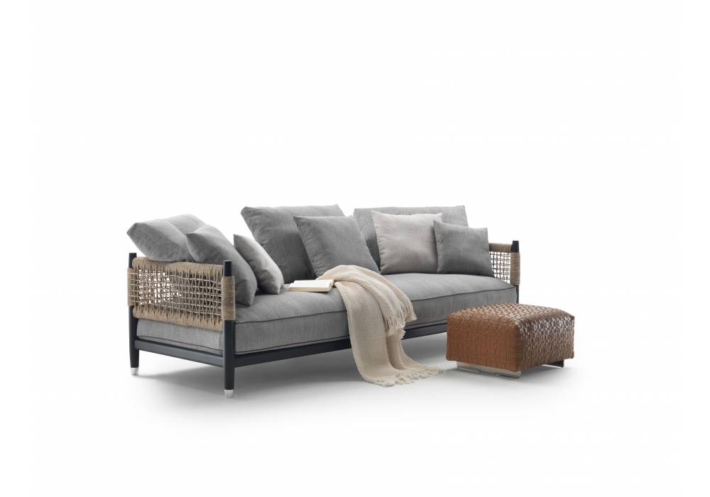 Parker conçu par Antonio Citterio pour Flexform est un canapé avec structure en bois massif, coque en cuir tressé ou peau, et revêtement en tissu ou cuir.