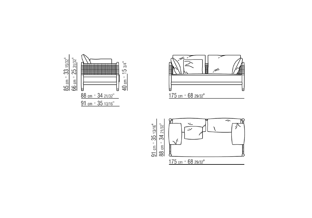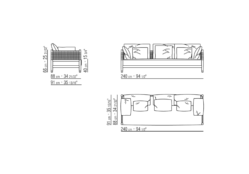 | Dimensions | • 175 x 91 x H 85 cm; • 240 x 91 x H 85 cm |