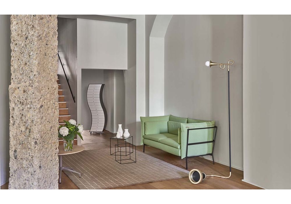 Basket conçu par Ronan & Erwan Bouroullec pour Cappellini est un canapé avec dossier bas réalisé avec structure en métal verni mat, rembourrage en mousse de polyuréthane de différentes densités et fibre acrylique et revêtement amovible en tissu ou cuir. Disponible en différentes dimensions.