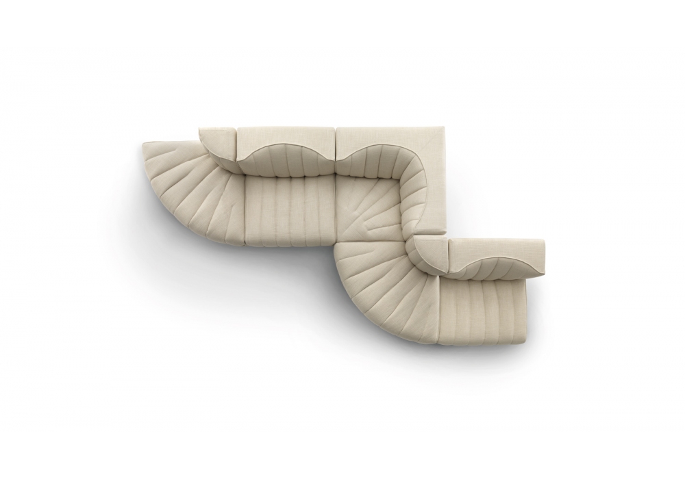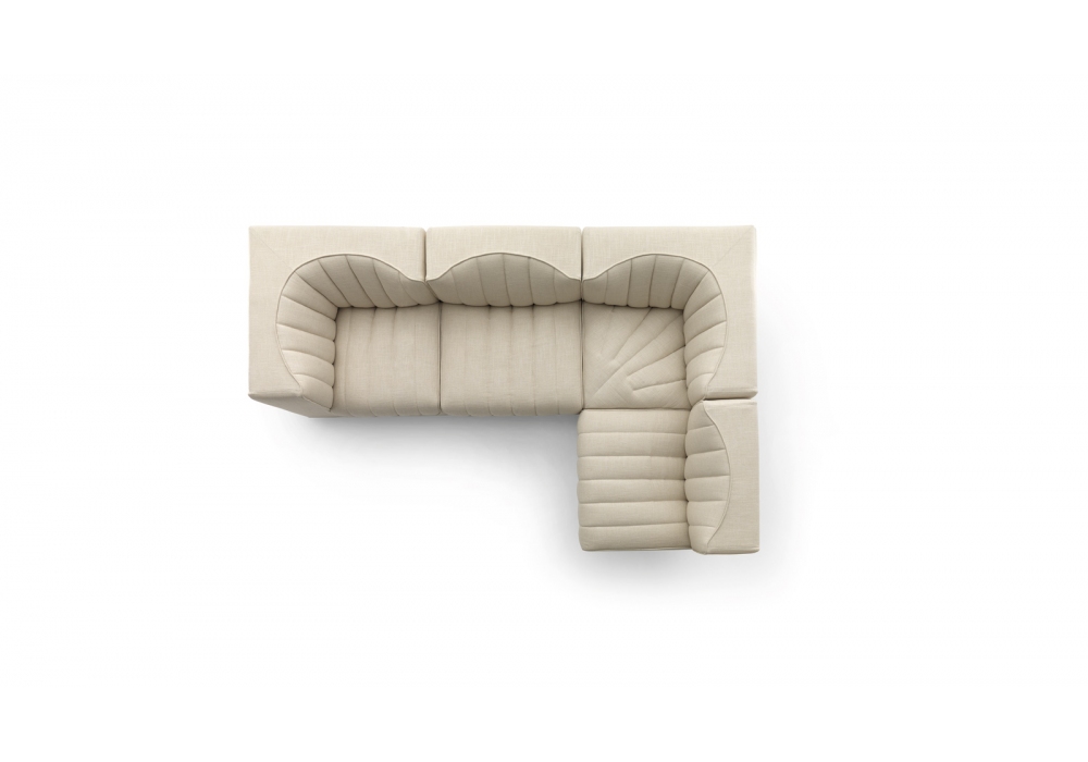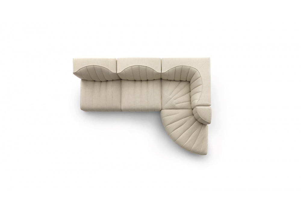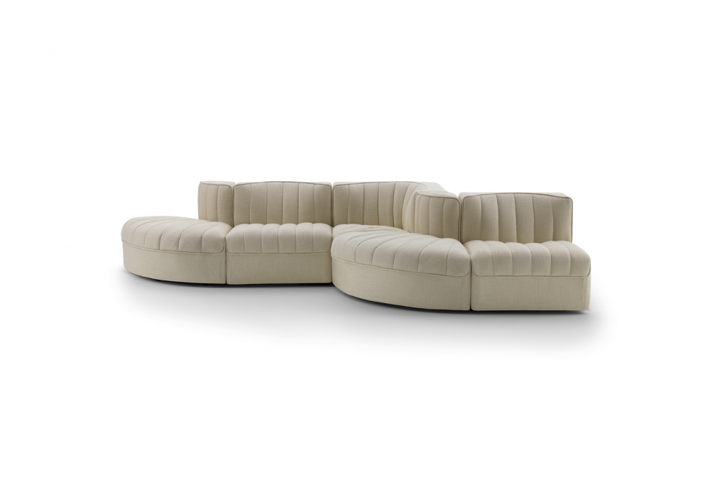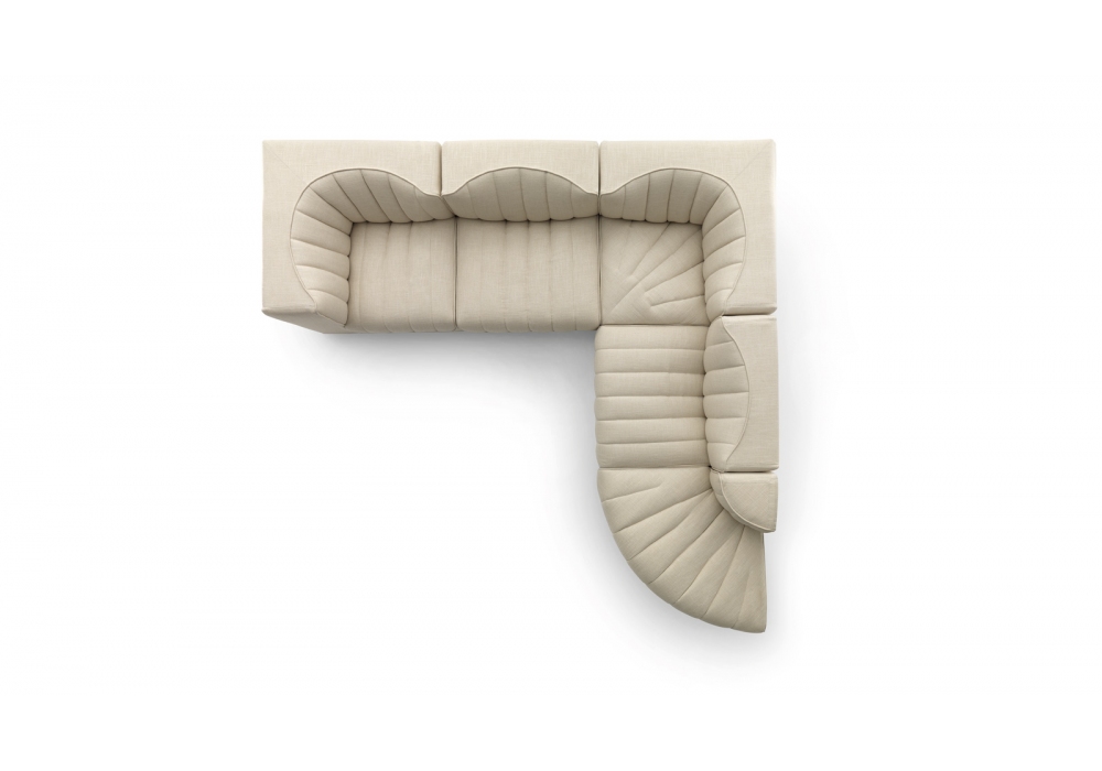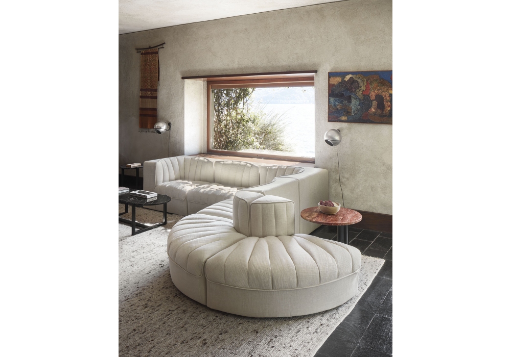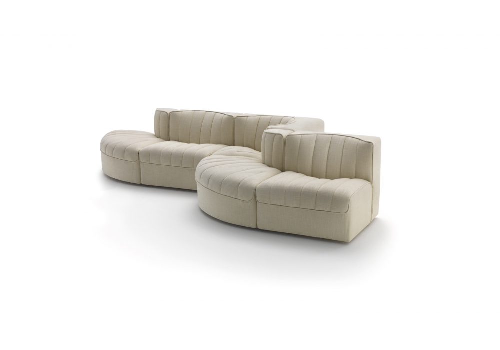 9000 conçu par Tito Agnoili pour Arflex est un canapé modulaire avec structure en métal et contreplaqué de peuplier, le rembourrage est en polyuréthane façonné. Revêtement en tissu déhoussable ou cuir non déhoussable. Disponible en différentes tailles et modules.