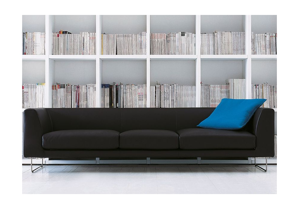 Elan conçu par Jasper Morrison pour Cappellini est un canapé à deux places, trois places ou modulable réalisé avec un revêtement en tissu ou en cuir, rembourrage en mousse de polyuréthane à densité différenciée et fibre, structure en bois et base en acier inoxydable ou verni mat.