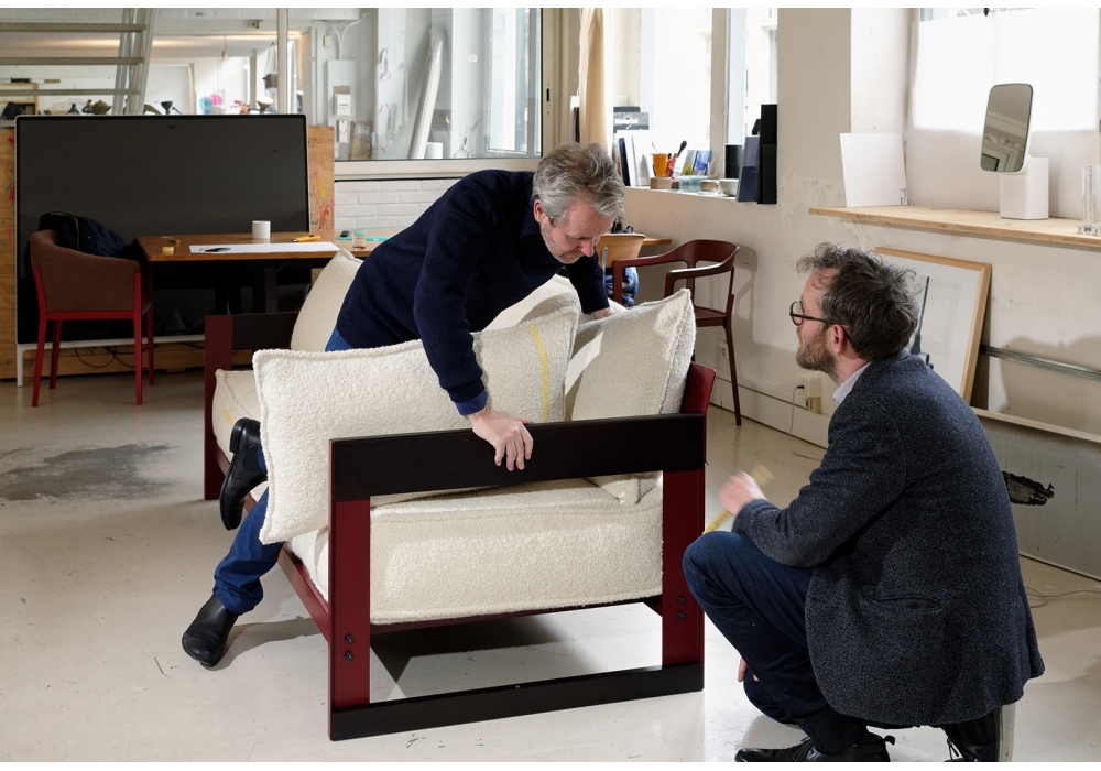 Cassette conçu par Ronan & Erwan Bouroullec pour Established & Sons est un canapé en acier et chêne massif. Disponible en différentes tailles et finitions. Housse amovible.