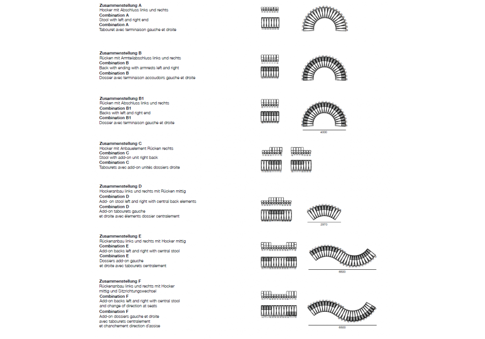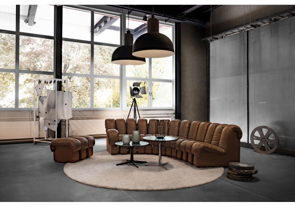 DS-600 conçu par de Sede Design Team pour De Sede est un canapé modulaire composé d'éléments simples en mousse dure en forme de L recouvert d'un coussin doublé de plumes recouvert de cuir. Les éléments sont reliés par une fermeture éclair push-fit et une construction en cuir et fermeture éclair. Revêtement en cuir ou tissu en différentes finitions.