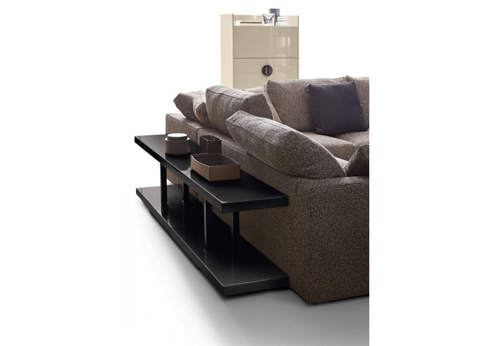 Babiloniadue conçu par M. Lipparini pour Dema est un canapé avec structure en bois mixte et acier, rembourré en mousse de polyuréthane et recouvert d'une doublure protectrice en tissu. Coussins d'assise en mousse polyuréthane multi-densité et fibre polyester Cinfill, doublés de toile de coton blanche. Pieds en aluminium satiné ou noir. Revêtement en tissu ou cuir.