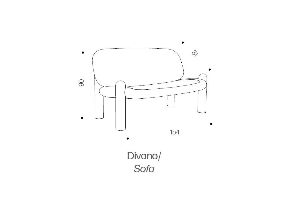 Tottori conçu par Kateryna Sokolova pour Driade est un canapé avec structure en polyuréthane flexible de densité moyenne, pieds en PE pour reposer au sol. Le rembourrage est fixe avec possibilité de matériaux différents pour les pieds par rapport à ceux de l'assise et du dossier. Usage interne uniquement.