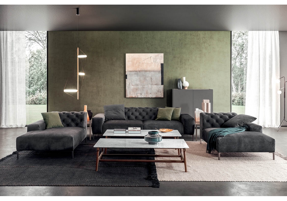 Boston conçu par Metrica D&A pour Pianca est un canapé réalisé avec une structure interne avec des éléments en bois massif et des panneaux à haute densité rembourrés en mousse de polyuréthane à densité différenciée, une surface d'assise équipée de ressorts avec des sangles élastiques différenciées et des pieds en fonte d'aluminium bruni mat. Revêtement amovible en tissu, cuir ou cuir synthétique. Disponible en version lisse ou capitonnée.
