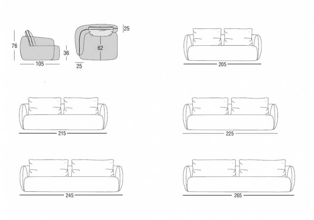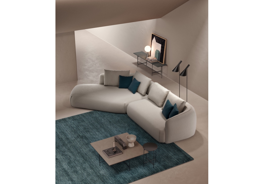 Aland conçu par Enrico Cesana pour Marac est un canapé modulaire avec structure en bois de sapin (Picea Abies) et contreplaqué, avec ceintures élastiques. Rembourrage en différentes finitions, uniquement en tissu, non déhoussable.