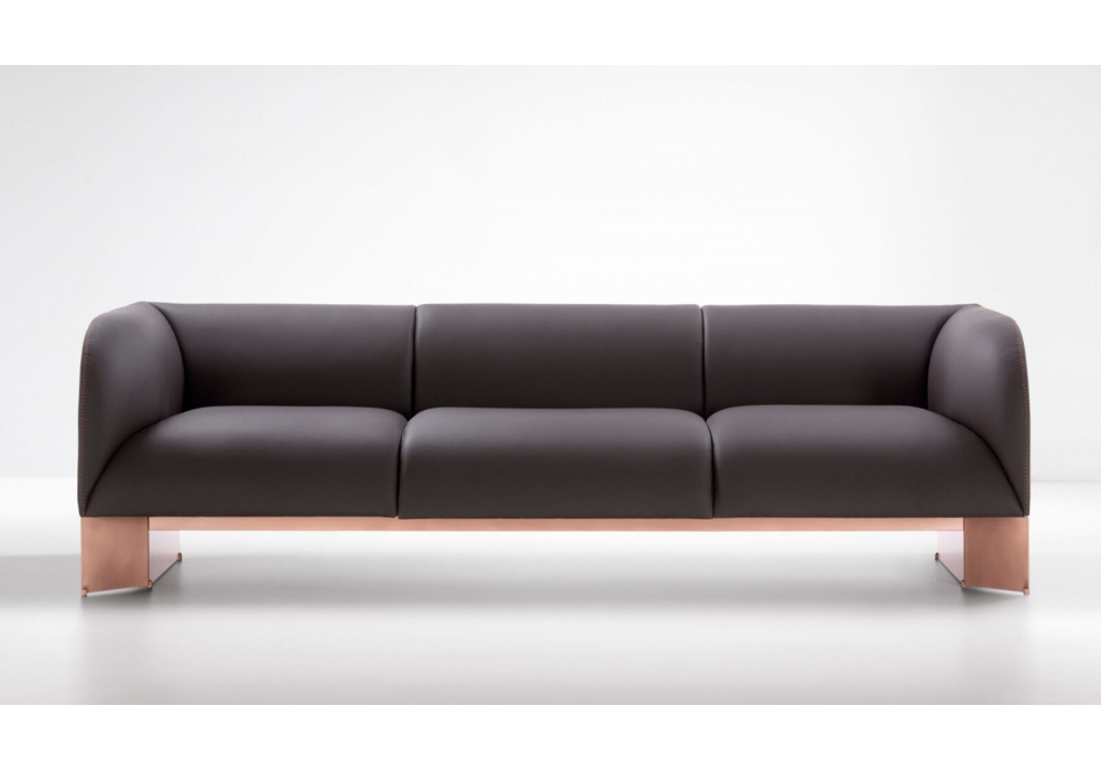 Caravan conçu par Emilio Nanni pour DeCastelli est un canapé rembourré avec dossier et accoudoirs en métal. Structure en bois monocoque avec rembourrage d'assise en mousse de polyuréthane. Tapisserie d'ameublement en cuir. Disponible en différentes finitions.
