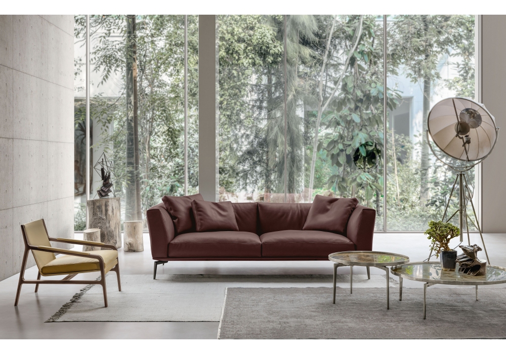 Horizon conçu par Giuseppe Bavuso pour Alivar est un canapé linéaire ou modulaire réalisé avec une structure en bois et en acier recouverte de mousse de polyuréthane de différentes densités et doublure en fibre de polyester. Coussins d'assise en mousse de polyuréthane à haute capacité de charge à densité différenciée et couette en duvet stérilisé. Accoudoirs et dossiers en caoutchouc polyuréthane à densité différenciée et doublure en fibre de polyester. Pieds en fonte d'aluminium, poli ou peint. Revêtement en cuir ou tissu.