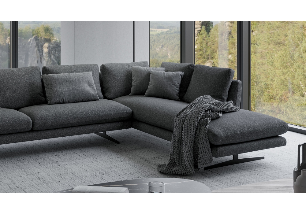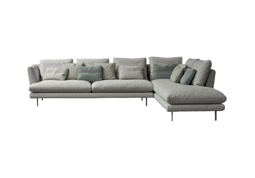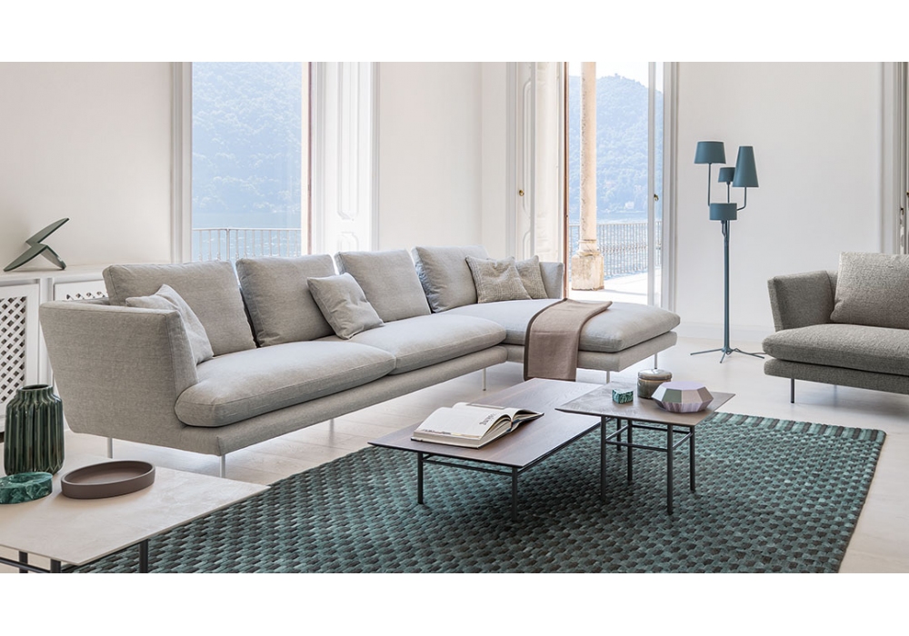 Lars conçu par Giuseppe Viganò pour Bonaldo est un canapé modulable avec revêtement amovible en tissu ou cuir, avec base en forme ou pieds en métal verni mat. Disponible en différentes compositions.