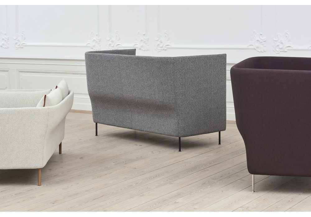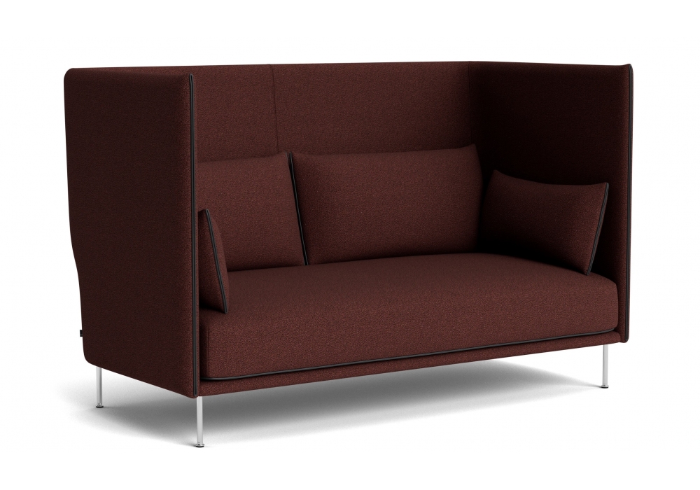 Silhouette High Back conçu par GamFratesi pour Hay est un canapé deux ou trois places avec revêtement en cuir ou tissu, coussin d'assise en ressorts ensachés et mousse PU, coussins d'accoudoir et de dossier remplis de plume et de mousse granulée, pieds en acier peint , chromé ou en chêne massif et passepoil en cuir ou assorti au tissu. Disponible en différents revêtements et dimensions.