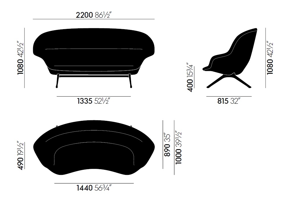 Abalon Sofa conçu par Ronan & Erwan Bouroullec pour Vitra est un canapé composé d'une structure en métal avec mousse de polyuréthane expansé et feutre de polyester, rembourrage amovible en tissu tricoté et pieds en aluminium moulé sous pression, thermolaqué.