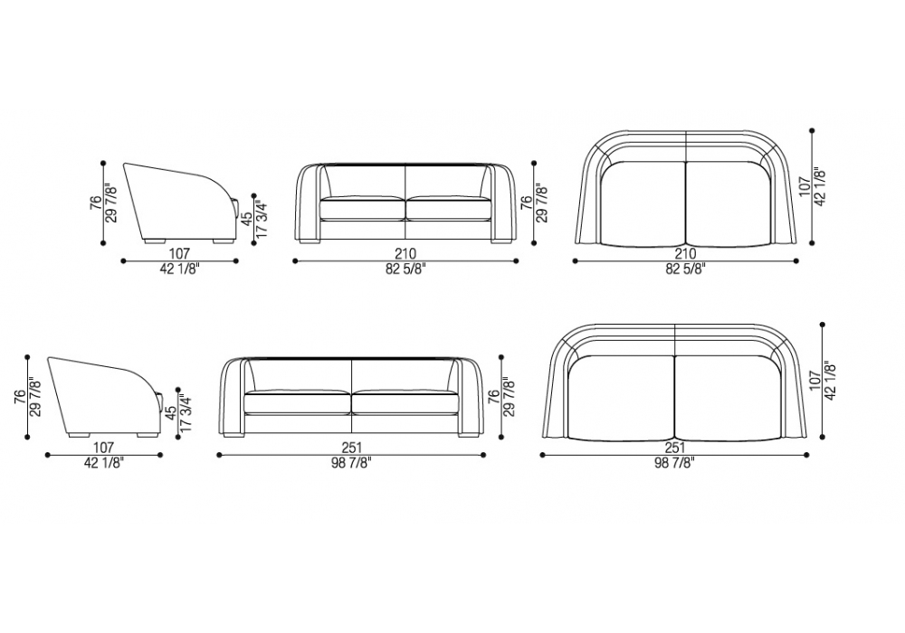 Carmen conçu par Castello Lagravinese Studio pour Opera Contemporary est un canapé rembourré réalisé avec des pieds en bois de frêne et un revêtement en tissu ou cuir. Disponible en 2 dimensions.
