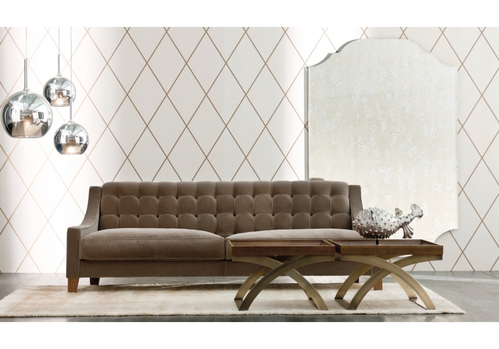 Rosalie Classic conçu par Castello Lagravinese Studio pour Opera Contemporary est un canapé avec rembourrage en plumes avec insert en mousse de polyuréthane, base en bois et revêtement inamovible en cuir ou tissu. Disponible en 2 dimensions.