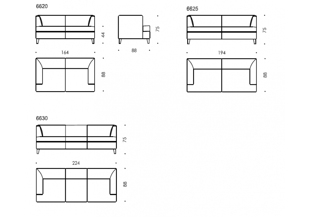 | Dimensions | - 164 x 88 x H 75 cm; - 194 x 88 x H 75 cm; - 224 x 88 x H 75 cm. |