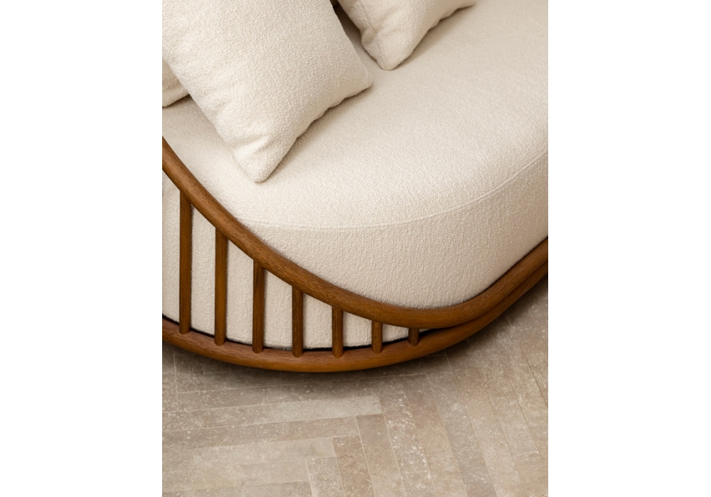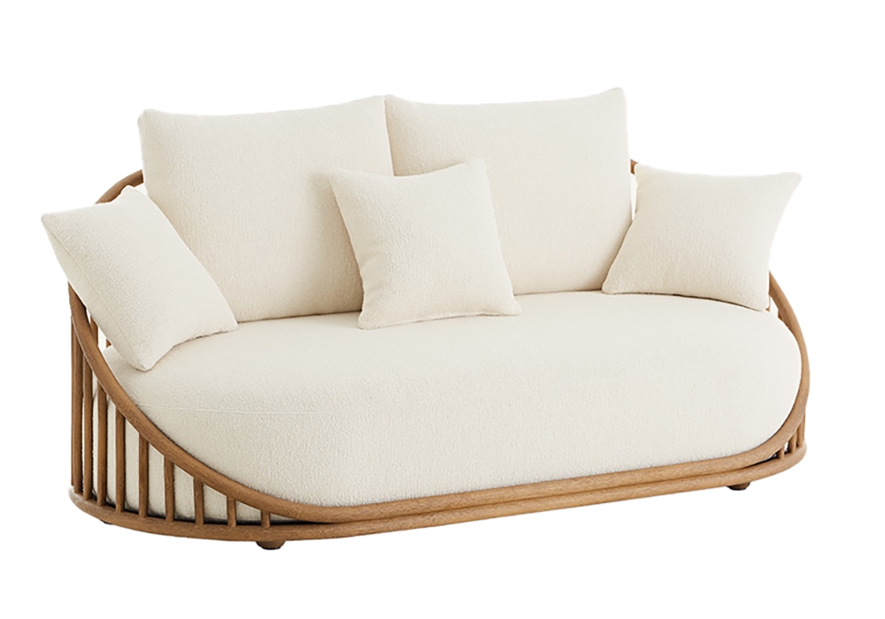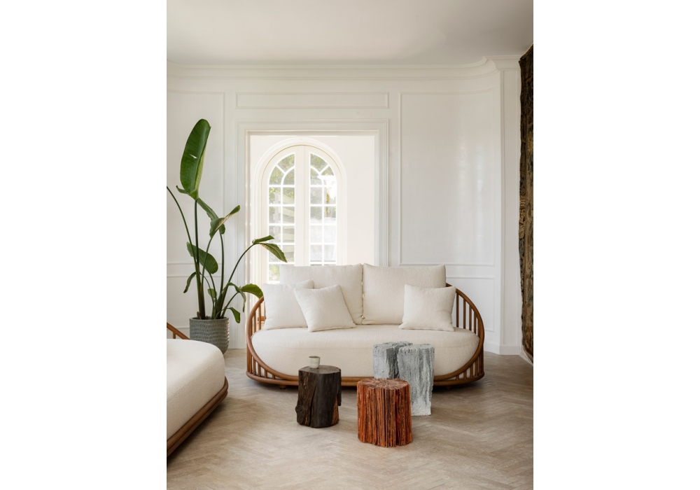 Cask conçu par NORM Architects pour Expormim est un canapé causeuse avec structure en rotin naturel fini avec un revêtement triphasé à base d'eau hautement résistant au rayonnement solaire grâce à des filtres UV. Disponible en différentes finitions et deux modèles.