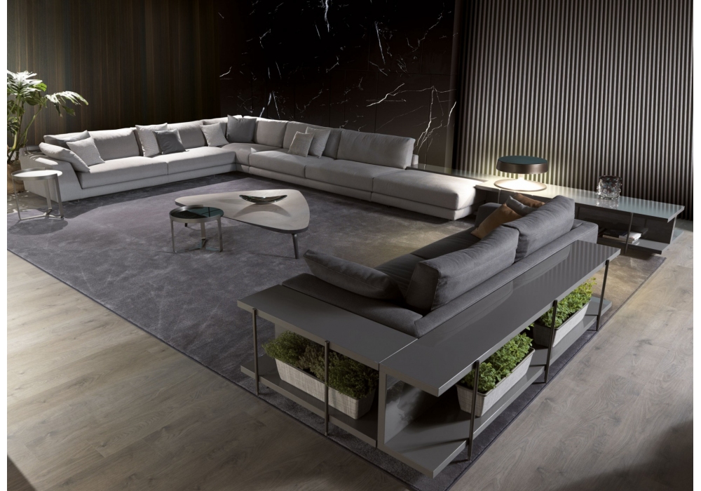 Argo conçu par Mauro Lipparini pour MisuraEmme est un canapé disponible dans une version fixe et modulaire caractérisée par de multiples possibilités de composition, a une structure en contreplaqué et comprend des éléments centraux sans accoudoir, des éléments d'angle et d'extrémité avec deux types différents d'accoudoir, pouf et chaise longue. Tous les éléments sont disponibles en deux largeurs et peuvent être combinés librement les uns avec les autres. Le projet comprend de petites tables au centre de la pièce et des éléments de bibliothèque à placer à côté ou derrière les canapés qui rendent le système personnalisable et distinguent le salon.